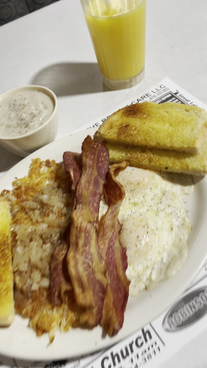 Welcome to the Halfway Diner on 14 Mile Rd in Rockford Michigan! stepping into the place reminded me of beloved diners i would find in northern Michigan… you can see its kinda slapped together BUT that added a lot of charm. the staff was great and they are known for great breakfasts so i got 2 eggs over easy, crispy bacon with crispy hash browns topped with onions and a side of sausage gravy. i chased it all with an orange juice. everything was cooked perfectly and delicious… and filling. well worth the visit. i’ll be back